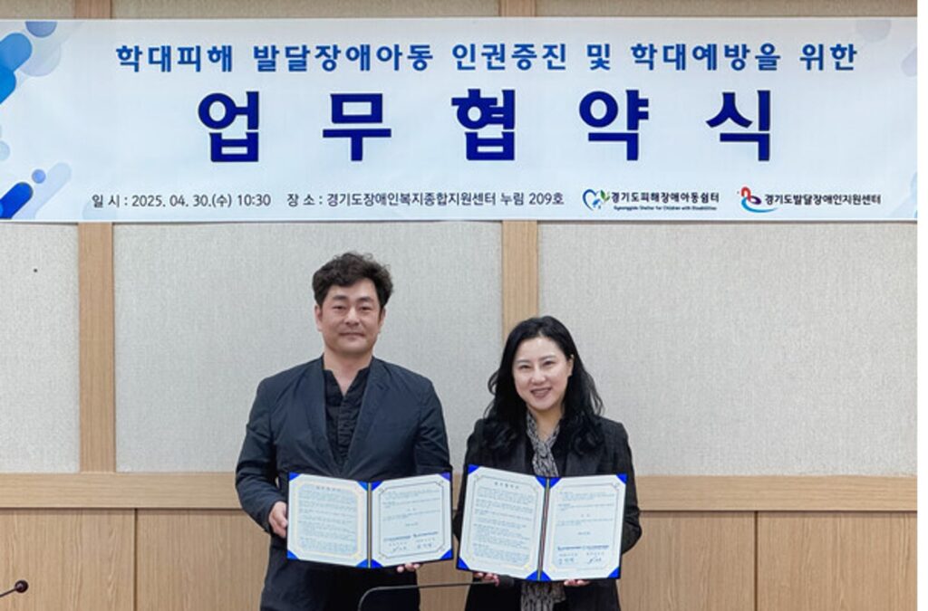 한국장애인개발원 경기도발달장애인지원센터(센터장 김민영, 이하 경기발달센터)는 30일(수) 경기도피해장애아동쉼터(센터장 최승호)와 경기도 내 발달장애아동의 학대 예방과 피해 장애아동을 위한 인권 보호 강화를 위해 업무협약을 체결했다.