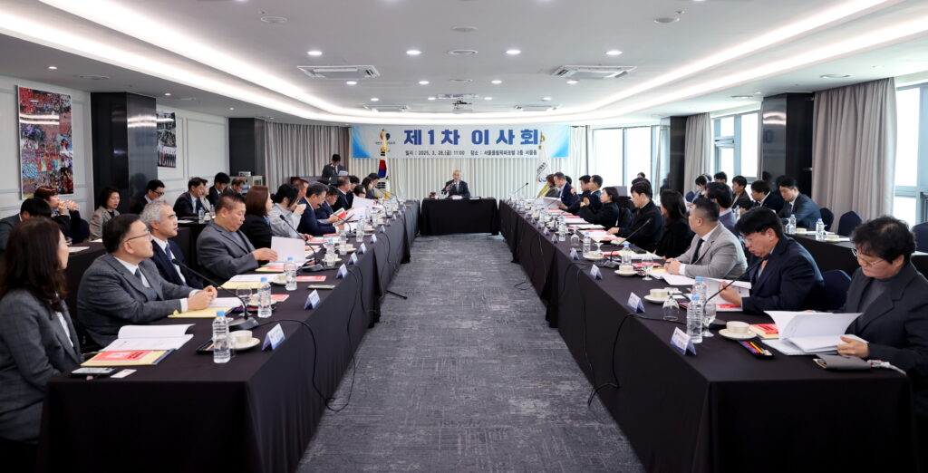 대한장애인체육회(회장 정진완)는 3월 28일(금) 서울올림픽파크텔에서 제6대 집행부 제1차 이사회를 개최했다. 이번 이사회에서는 부회장 8명에 대한 위촉 동의(안), 사무총장 임명 동의(안) 그리고 선수촌장 임명 동의(안) 등 세 가지 안건을 심의·의결했다.
