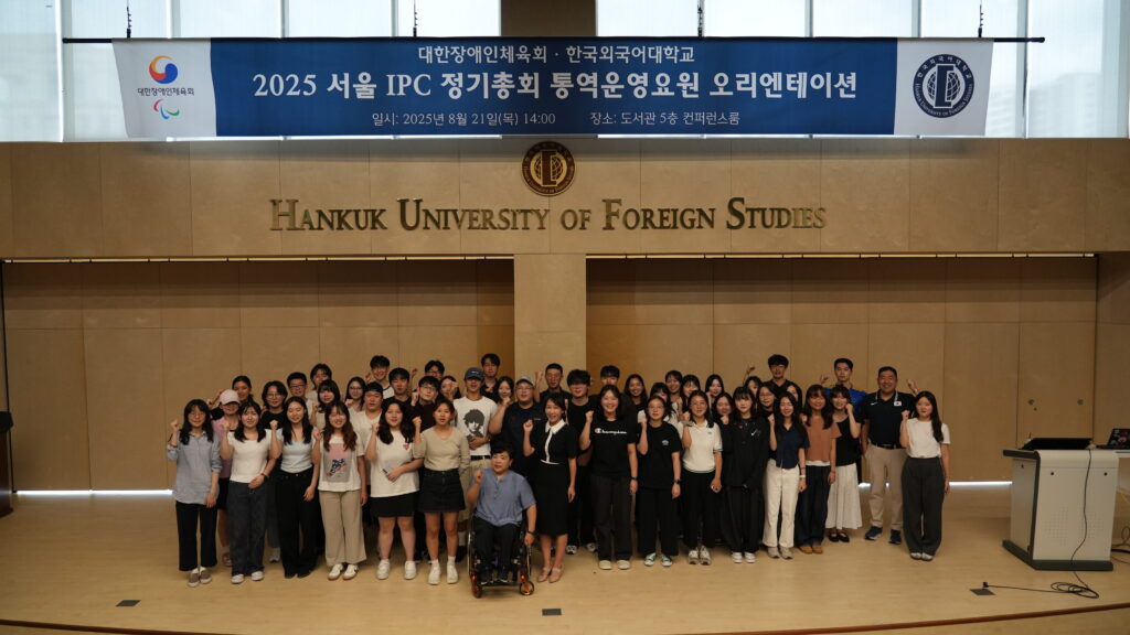대한장애인체육회(회장 정진완)는 오는 9월 열리는 2025 서울 IPC 정기총회를 앞두고 21일 한국외국어대학교 도서관 컨퍼런스룸에서 통역운영요원 오리엔테이션을 실시했다. 이번 교육에는 26개 언어를 구사하는 한국외국어대학교 학생 57명이 참여해, 행사 기간 동안 세계 각국 대표단과의 소통을 담당할 예정이다.