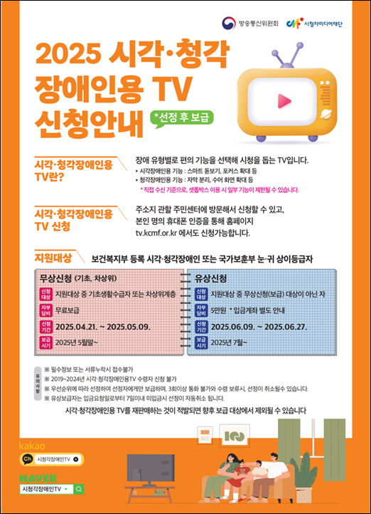 “시각‧청각 장애인용 티브이(TV) 신청하세요”