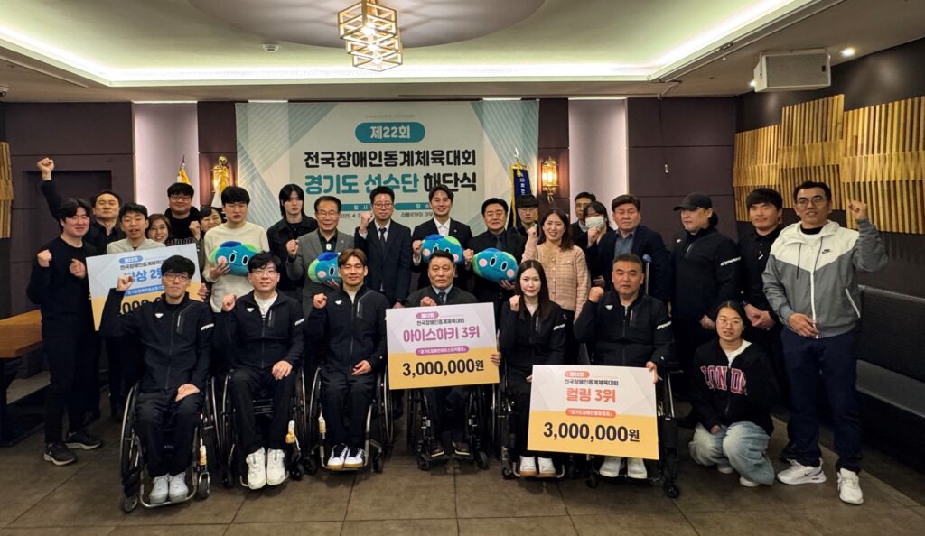 경기도장애인체육회(회장 김동연)는 4월 2일 수원 라메르아이에서 제22회 전국장애인동계체육대회 경기도 선수단 해단식을 개최하고 선수들의 노고를 격려했다.