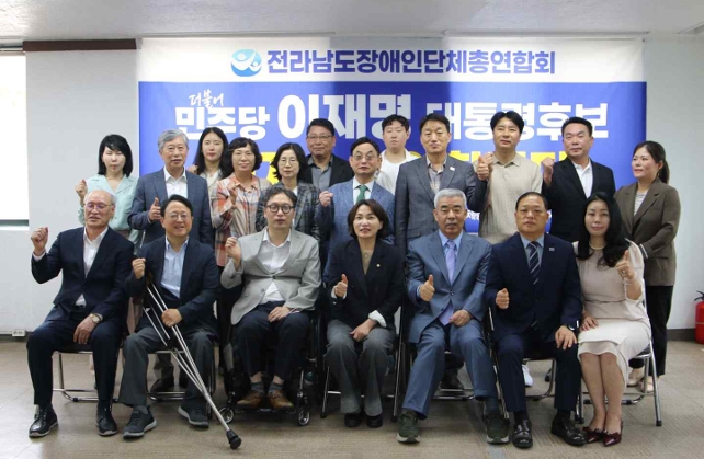 26일 오전 (사)전라남도장애인단체총연합회(이하 전남장총)는 연합회 회의실에서 기자회견을 열고 이재명 후보 지지를 공식 선언했다. 임흥빈 전남장총 상임대표는 “이재명 후보는 장애인 당사자의 삶을 이해하고 변화시켜온 후보”라며, “장애인 권리 실현의 적임자”라고 강조했다. 전남장총은 도내 17개 장애인단체가 소속된 광역단위 연합체로, 전남 지역 장애계를 대표하는 핵심 조직이다.