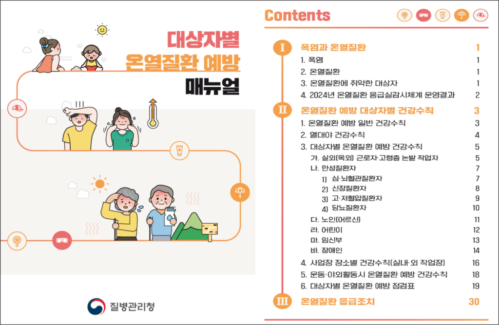 질병관리청(청장 임승관)은 무더위와 열대야가 본격화됨에 따라 온열질환으로 인한 건강 피해를 최소화하기 위해 「대상자별 온열질환 예방 매뉴얼」을 개정했다고 24일 밝혔다.