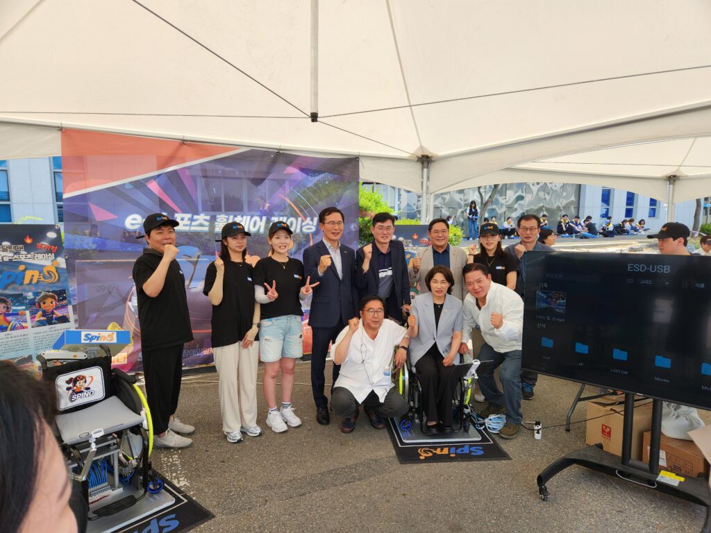 또한 체험 행사를 진행한 [e-스포츠 휠체어 레이싱 스피노]팀을 찾아 스피노를 직접 체험하고, 개발사인 (주)WE하다 임직원들을 격려 했다.